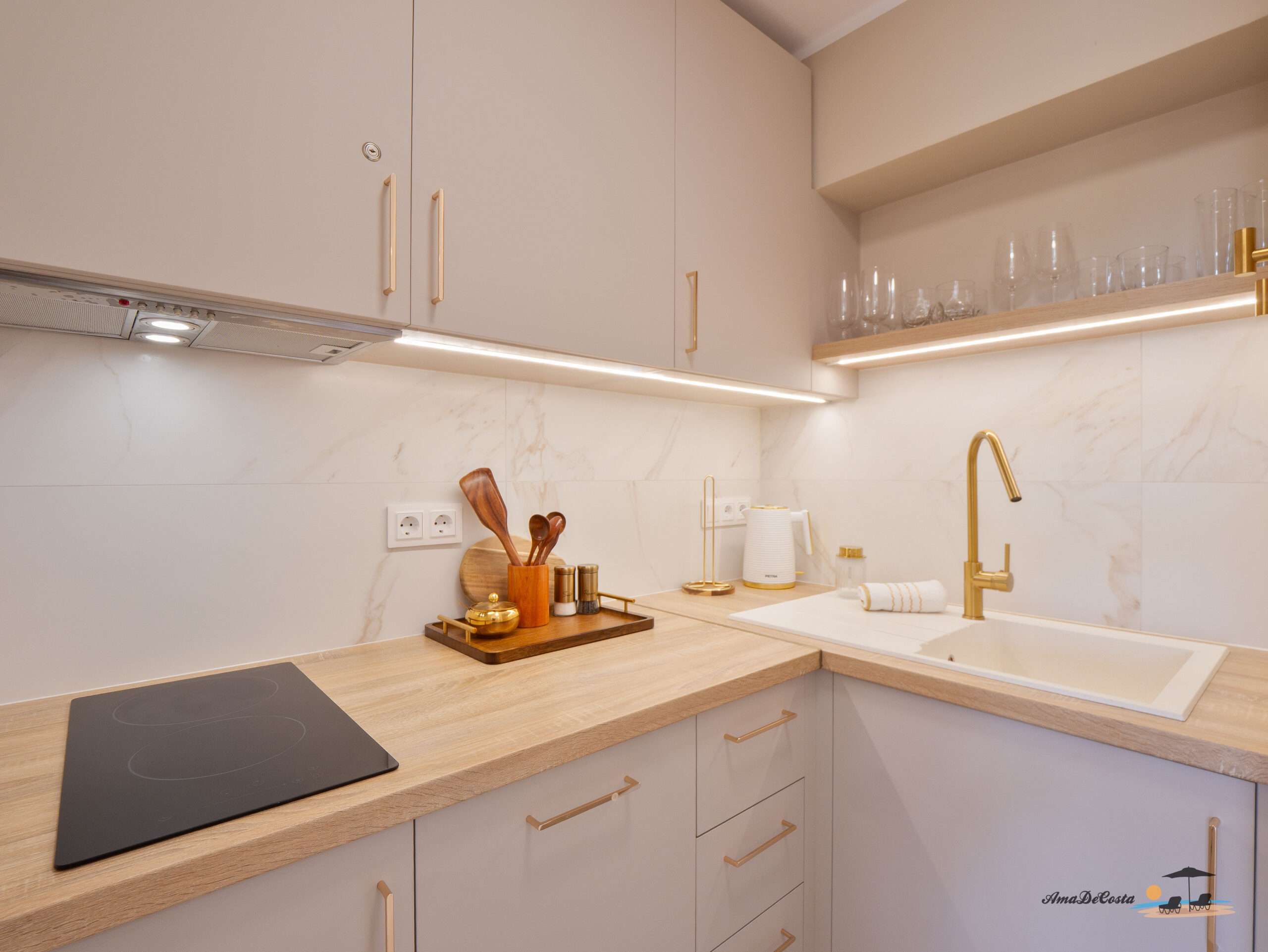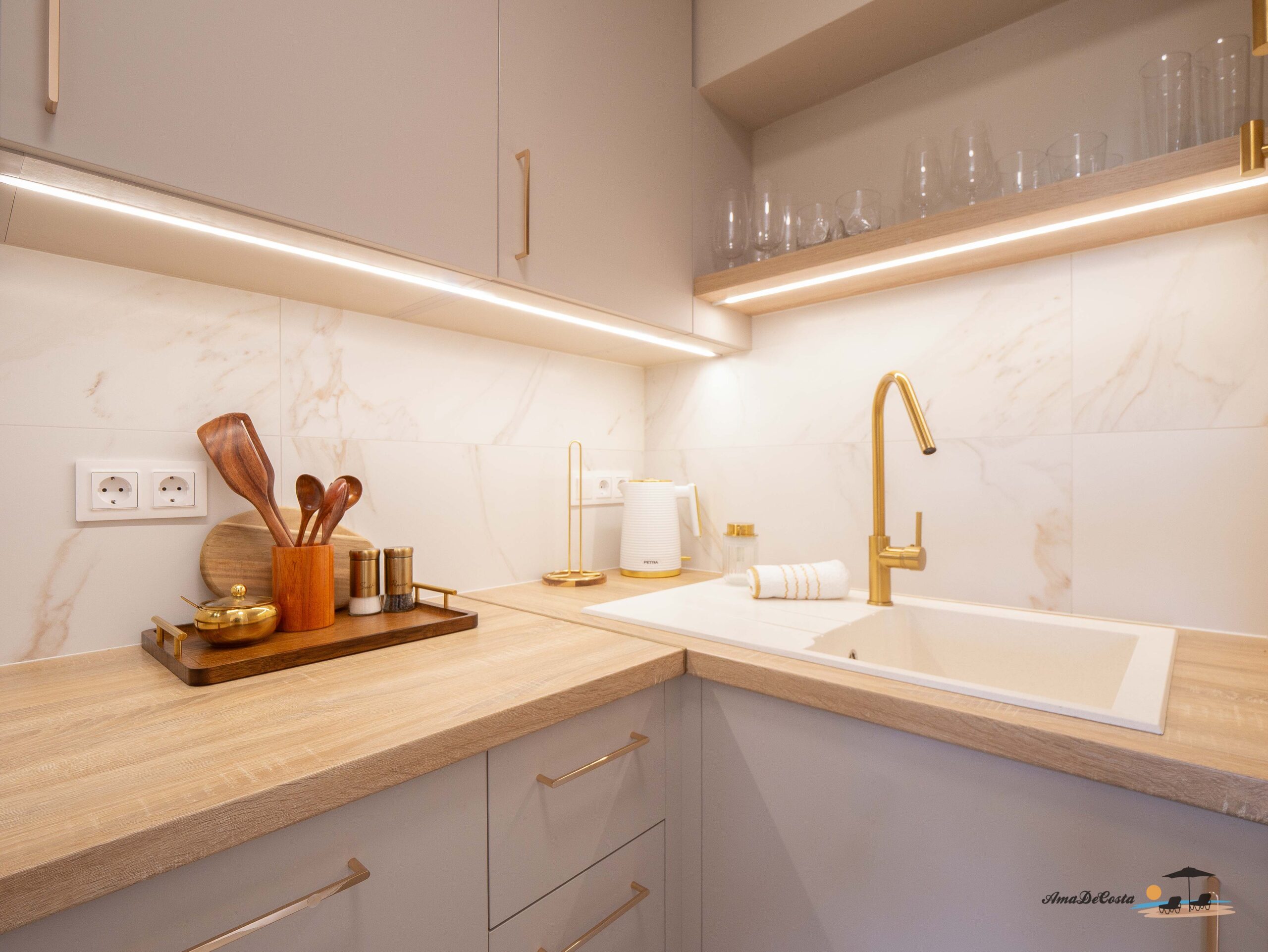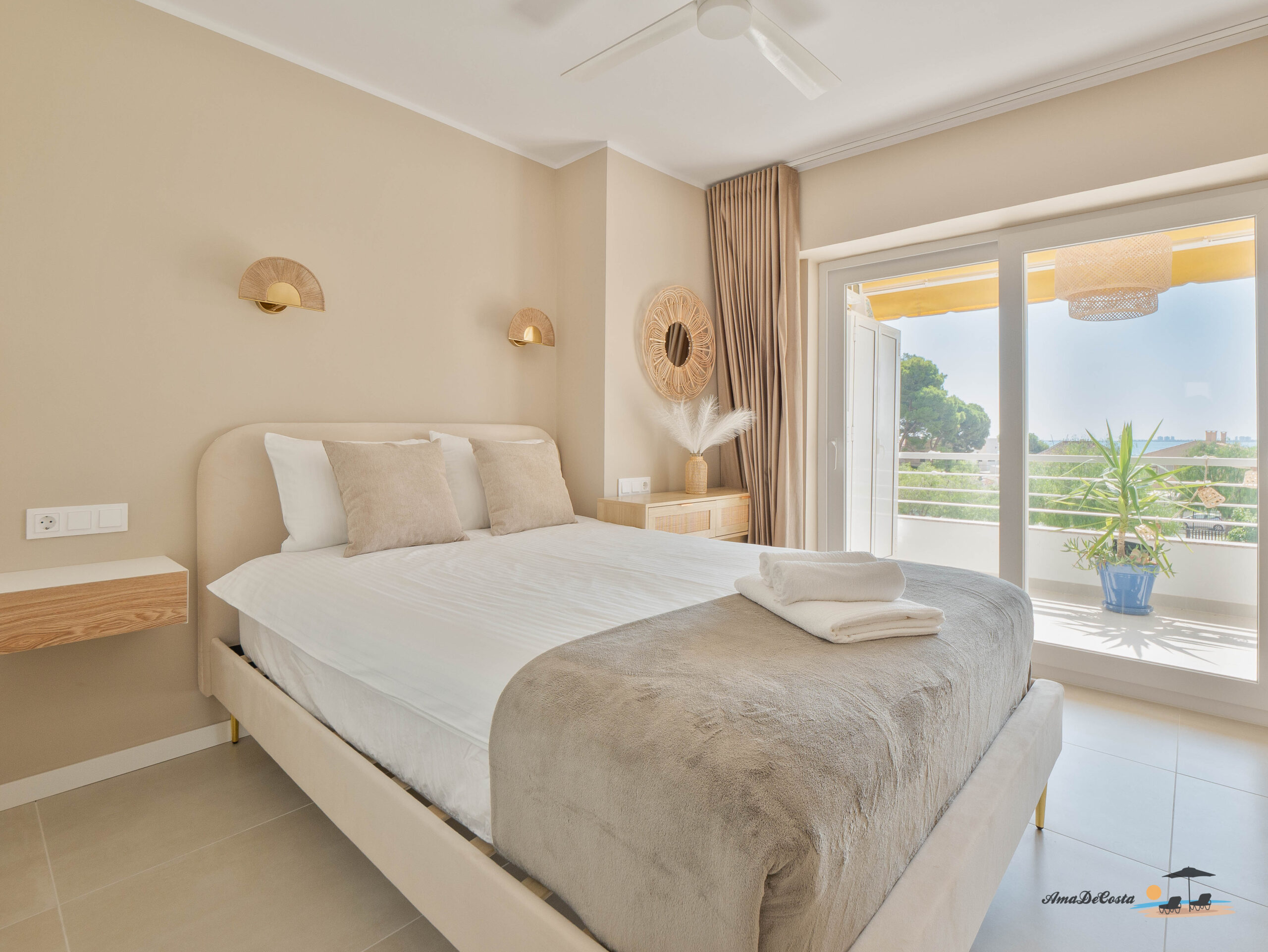 Składa się z dwóch przytulnych sypialni, wygodnego salonu, w pełni wyposażonego aneksu kuchennego oraz łazienki. Dodatkowym atutem jest uroczy balkonik, na którym możesz delektować się śniadaniem lub wieczornym drinkiem, podziwiając widok na egzotyczną hiszpańską roślinność.